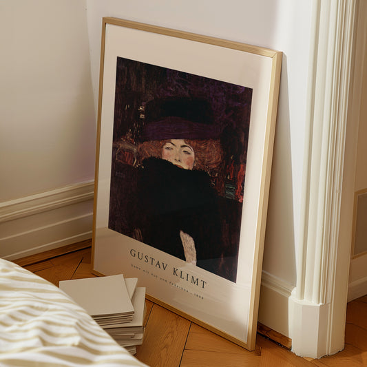 Gustav Glimt "Dame mit Hut und Federboa" Sanatsal Poster
