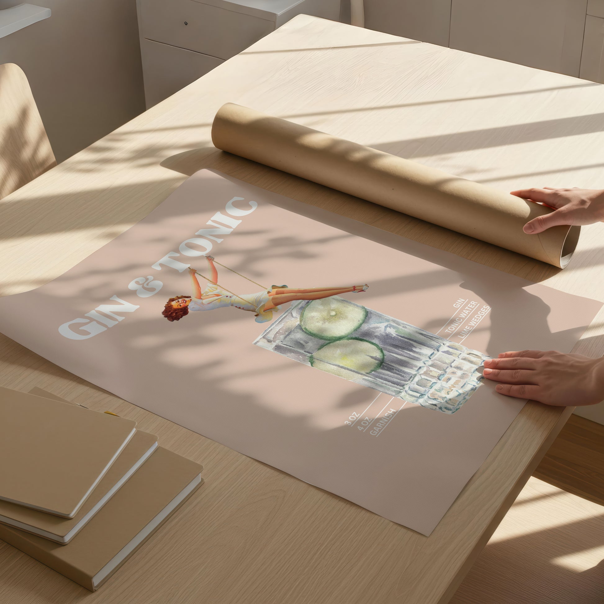 Buzla dolu uzun bardak üzerinde sallanan pin-up tarzı figür, tasarıma hem enerjik hem de eğlenceli bir dokunuş katarken, kokteyl tarifinin poster üzerinde yer alması bu eseri hem dekoratif hem de işlevsel bir hale getiriyor. Kokteyl severler, barmenler ve evde kendi içkisini hazırlamayı seven herkes için mükemmel bir hediye seçeneği.