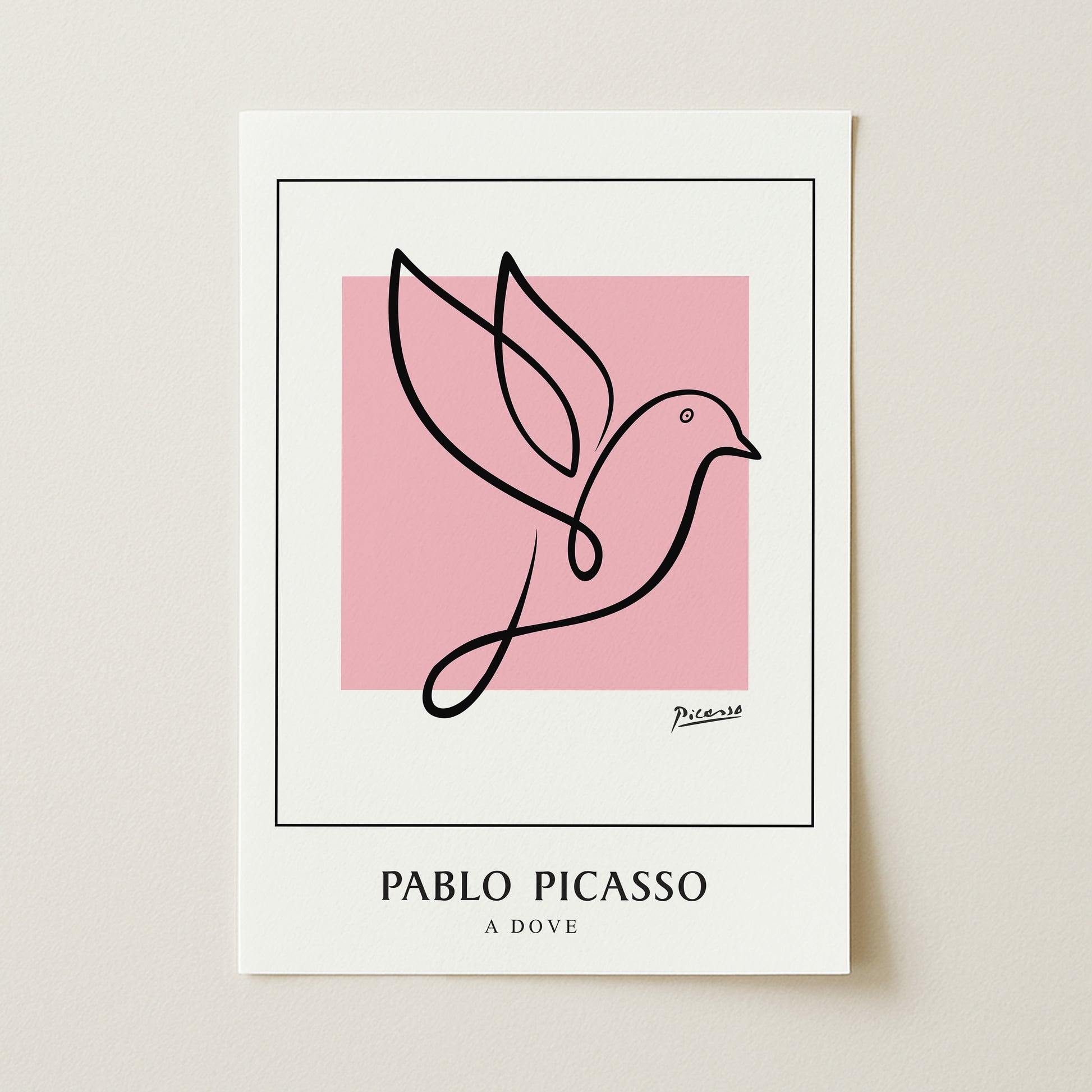 Pembe arka plan, çizginin zarafetini öne çıkararak esere modern ve sıcak bir estetik kazandırır. Eserin adı olan “A Dove” Türkçede “Bir Güvercin” anlamına gelir ve posterin sembolik değerini güçlendirir.